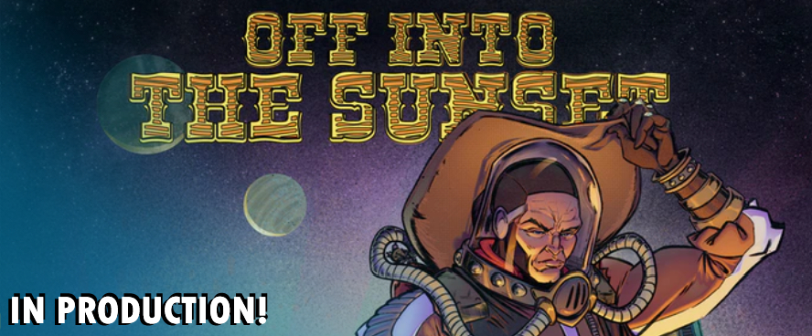 Off Into The Sunset is a 120+ Page anthology collecting stories inspired by westerns. Whether the story is a straight up classic western or a spy story using narrative devices popularized by westerns, a western set on a distant planet or a couple of disgraced knights trying to redeem their names, this anthology has got it all.